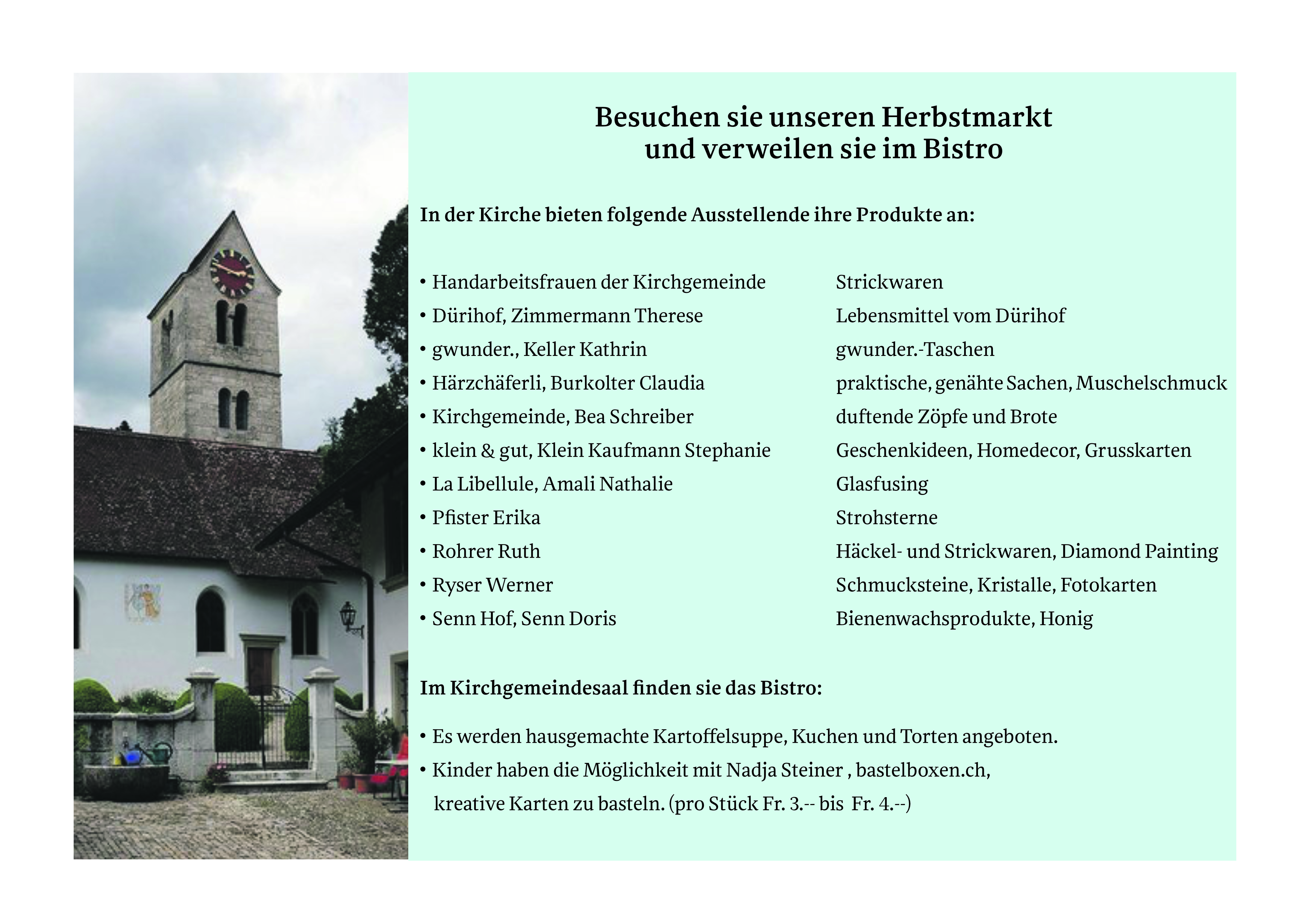 Herbstmarkt und Bistro, Samstag, 8. November, 10 - 15 Uhr, Kirche und Kirchgemeindesaal Aetingen