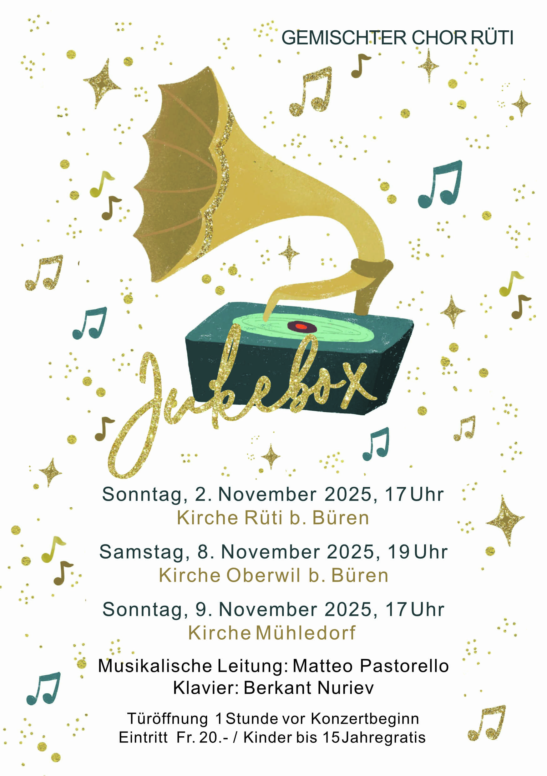 Konzert Gemischter Chor Rüti, Sonntag, 9. November, 17 Uhr, Kirche Mühledorf